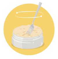 Une fois que le baume s'est solidifié, donnez-lui sa texture crémeuse en le fouettant avec une fourchette, jusqu'à obtenir une texture légère et aérée.