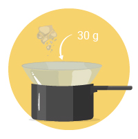 Faites fondre doucement le Beurre de Karité au bain-marie (avec une eau entre 35 et 40°).