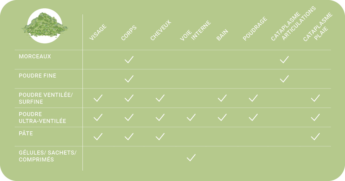 A savoir aussi qu’il ne faut en aucun cas réutiliser une argile déjà employée, elle sera chargée de toxines et impuretés…
