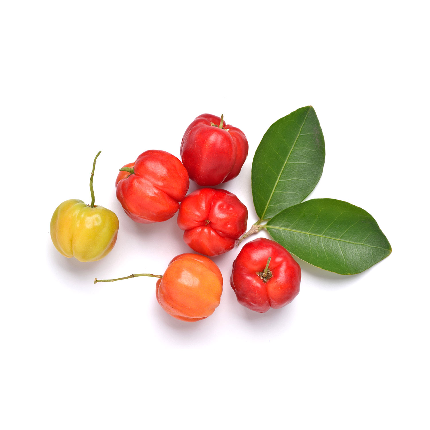 L'Acérola, également connue sous le nom scientifique de Malpighia emarginata, est souvent surnommée la cerise des Barbades en raison de sa similitude avec la cerise traditionnelle. Ce petit fruit provient d'un arbuste à feuillage vert et persistant, originaire d'Amérique du Sud et faisant partie de la famille des Malpighiacées. Ce qui rend l'Acérola unique, c'est sa forte concentration en vitamine C : 1 kg de poudre d'Acérola peut contenir autant de vitamine C que 40 kg d'oranges ou 400 kg de pommes. Traditionnellement consommé sous forme de jus, il est très populaire dans les supermarchés des Antilles, mais il est également disponible sous forme de divers compléments alimentaires tels que des gélules, des comprimés, teintures mères ou des ampoules.