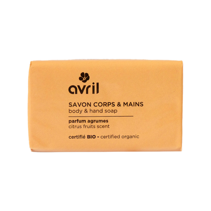 Un savon corps & mains BIO Agrumes alliant les effets nourrissants et adoucissants de l’huile de Noix de Coco et de l’huile d’Argan avec un parfum d'agrumes frais et fruité.
