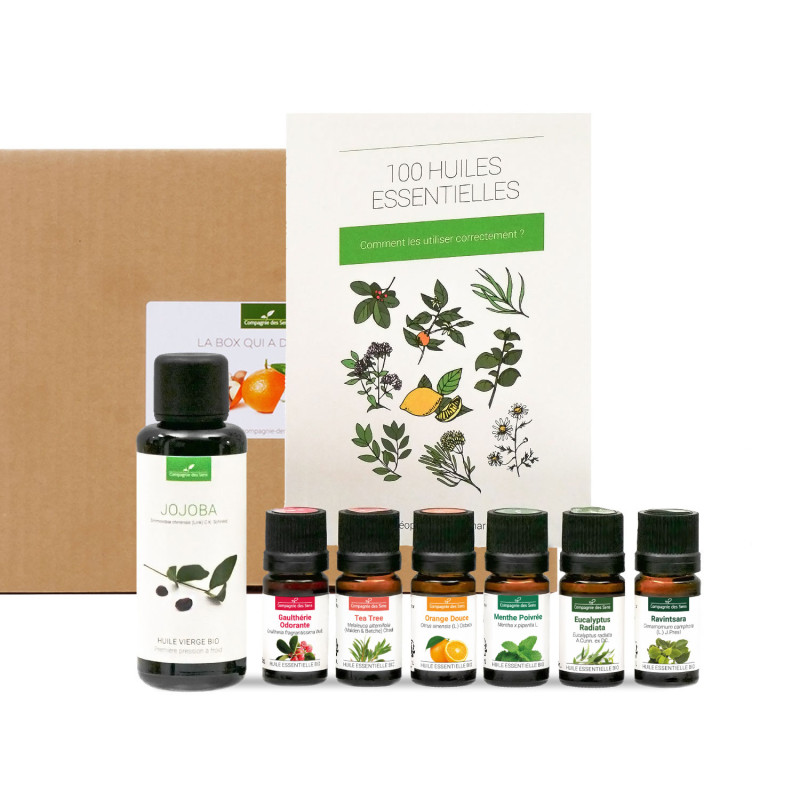 Un coffret de 6 huiles essentielles et 1 huile végétale pour bien démarrer en aromathérapie.