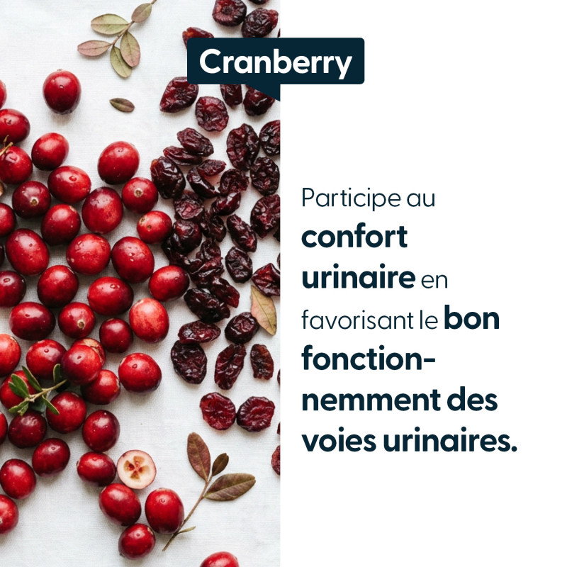 Ce produit est un complément alimentaire et non un médicament. En cas de symptômes urinaires persistants (brûlures, fréquence anormale, douleurs), il est indispensable de consulter un médecin. Les compléments alimentaires à base de canneberge s'inscrivent dans une démarche de maintien du confort urinaire et ne remplacent en aucun cas un traitement médical prescrit.