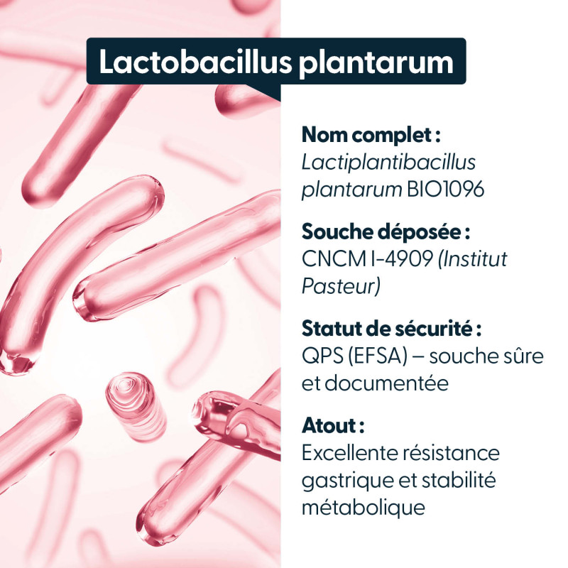 → Lactobacillus plantarum est reconnu pour sa bonne tolérance, mais un avis médical reste conseillé par précaution.