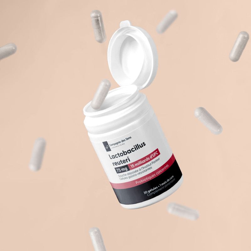 Notre Lactobacillus reuteri est une souche identifiée, séquencée et déposée à l’Institut Pasteur sous le numéro CNCM I-6029, garantissant une traçabilité complète et une sécurité maîtrisée. Produite sous le code BIO5454, elle bénéficie du statut QPS de l’EFSA et fait l’objet de contrôles qualité rigoureux incluant l’absence de gènes de virulence et de résistances transférables. Notre Lactobacillus reuteri est concentré à 200 milliards d’UFC/g, soit 15 milliards d’UFC par gélule. La souche est protégée par une gélule végétale HPMC gastro-résistante, optimisée pour assurer son passage intact jusqu’à l’intestin. Une formule unitaire hautement dosée, ciblée et d'une qualité irréprochable.