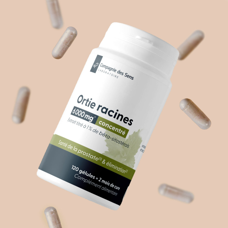 Les racines d’Ortie (Urtica dioica L.) renferment des phytostérols, dont le bêta-sitostérol, ainsi que des lignanes et des fractions lipophiles, largement étudiés pour leurs interactions avec les mécanismes biologiques impliqués dans la fonction prostatique. Ces composés sont au cœur de l’intérêt scientifique porté aux racines d’Ortie dans le contexte du vieillissement prostatique. Sur le plan biochimique, les extraits de racines d’Ortie :