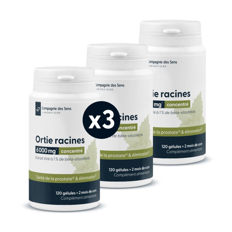 Cet extrait concentré de racines d'Ortie (Urtica dioica L.) est standardisé à 1 % de bêta-sitostérols, actifs majeurs des racines d’Ortie. Deux gélules apportent 600 mg d’extrait sec, soit l'équivalent en actifs de 6000 mg de poudre brute de racines d’Ortie. Ce format permet un apport précis et stable en actifs, idéal pour soutenir l'élimination urinaire et la santé de la prostate.