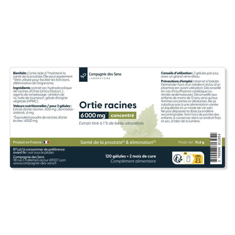 → La DDM correspond à la période pendant laquelle le fabricant garantit toutes les qualités du produit. Dépassée de quelques semaines ou mois, l’Ortie racines ne présente généralement pas de risque sanitaire si le produit a été correctement conservé et n’a pas été ouvert, mais son efficacité optimale n’est plus garantie. Par précaution, il est recommandé de respecter la DDM indiquée.