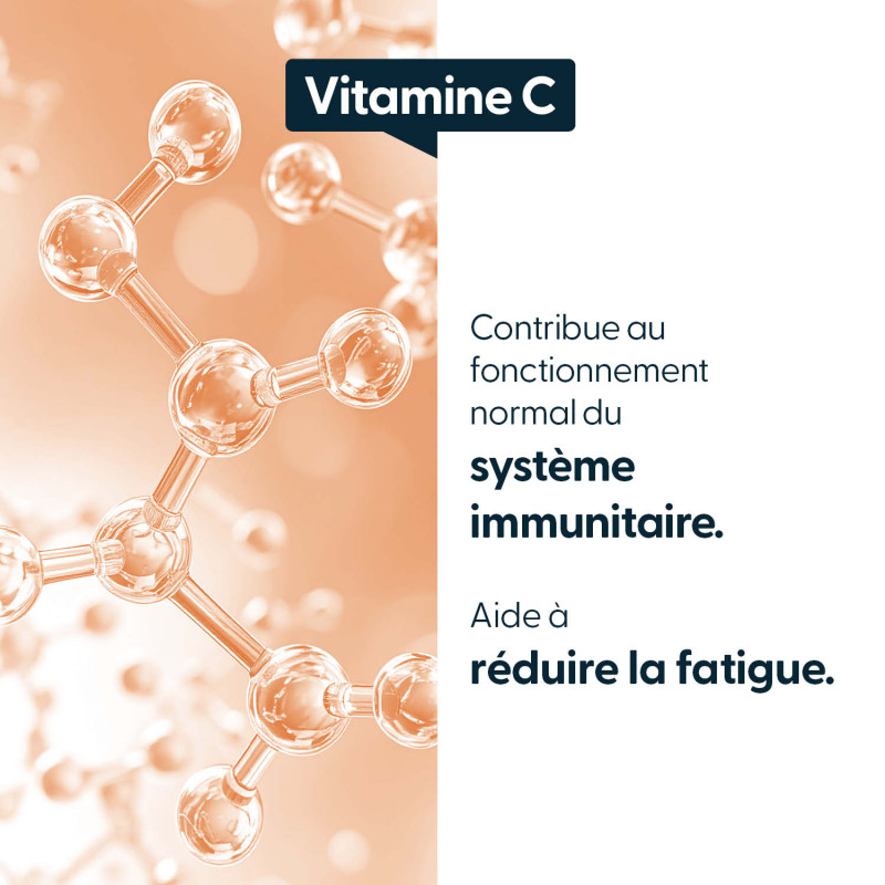 La vitamine C joue un rôle clé dans le soutien des défenses immunitaires. Elle participe au bon fonctionnement des cellules impliquées dans la réponse immunitaire et aide à protéger l’organisme du stress oxydatif généré lors des phénomènes inflammatoires ou infectieux. En contribuant au maintien des mécanismes de défense et à la résistance au stress oxydatif, elle soutient l’immunité au quotidien. Sur le plan biochimique, la vitamine C intervient notamment en :
