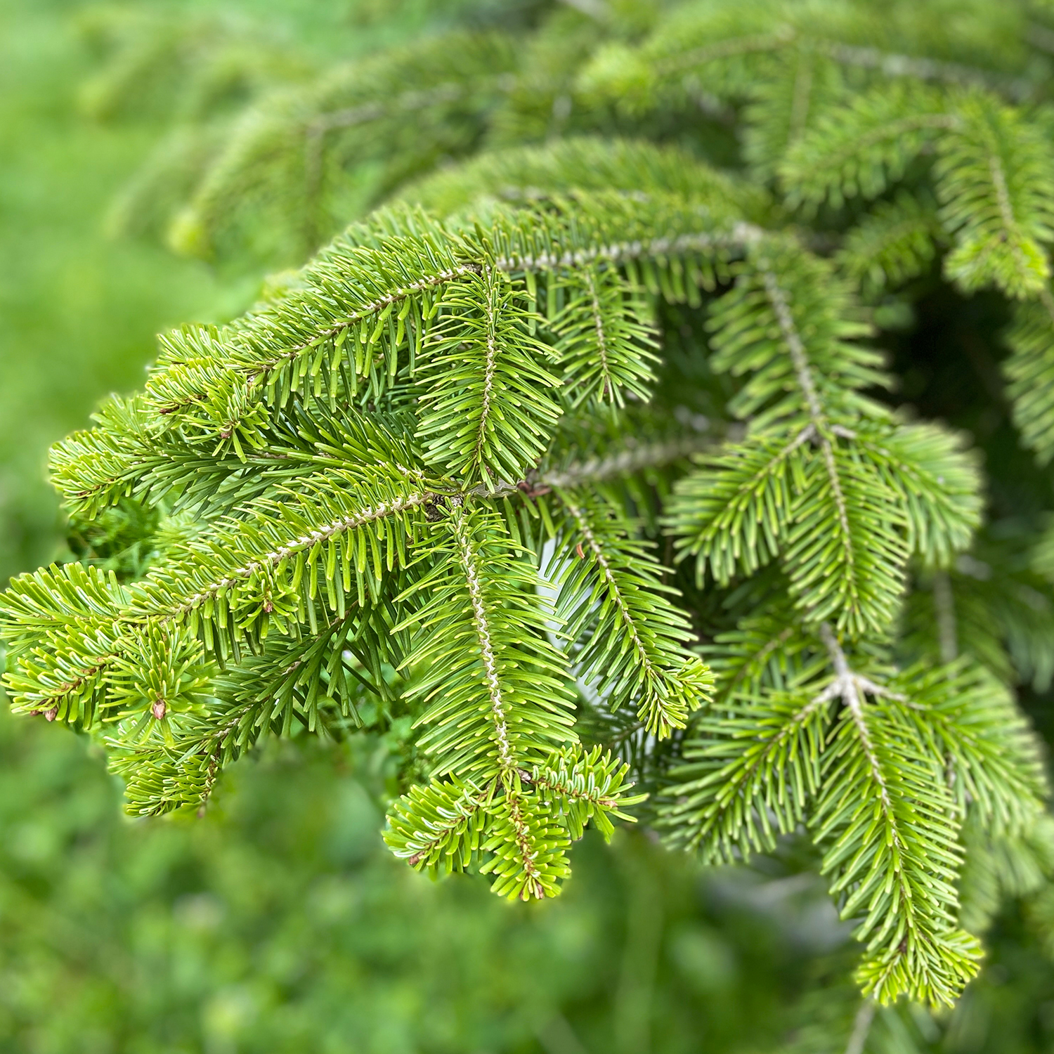 De la plante à l'huile essentielle. Le Sapin Baumier est un grand arbre de la famille des Pinacées, pouvant atteindre 30 mètres de haut, et vivre jusqu'à 150 ans. On le reconnait à ses aiguilles vert foncé et brillant sur le dessus, non piquantes, avec deux bandes blanches sur le dessous. Ce sont ces dernières qui sont d'ailleurs distillées pour obtenir de l'huile essentielle. Originaires du Canada, les branches fraîches sont généralement laissées par les exploitants forestiers et récupérées pour être distillées.
