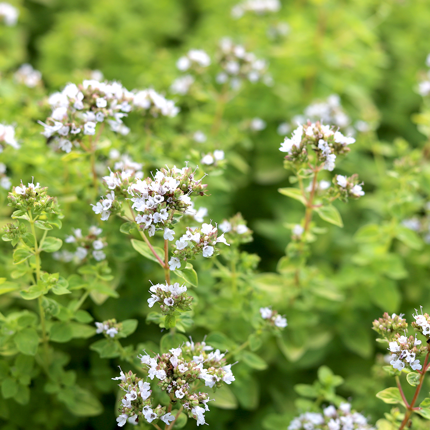 Composition biochimique. L'huile essentielle de Marjolaine à Coquilles est principalement composée de monoterpènes et de monoterpénols. Parmi les monoterpénols, on trouve une concentration d'environ 18 à 32% de terpinèn-4-ol et de 5 à 25% de cis-4-thuyanol. Parmi les monoterpènes, on retrouve environ 10 à 19% de γ-terpinène, de 4 à 12% d'α-terpinène, ainsi que de 4 à 10% de sabinène. Des sesquiterpènes et des esters sont également présents, mais à des concentrations plus faibles.