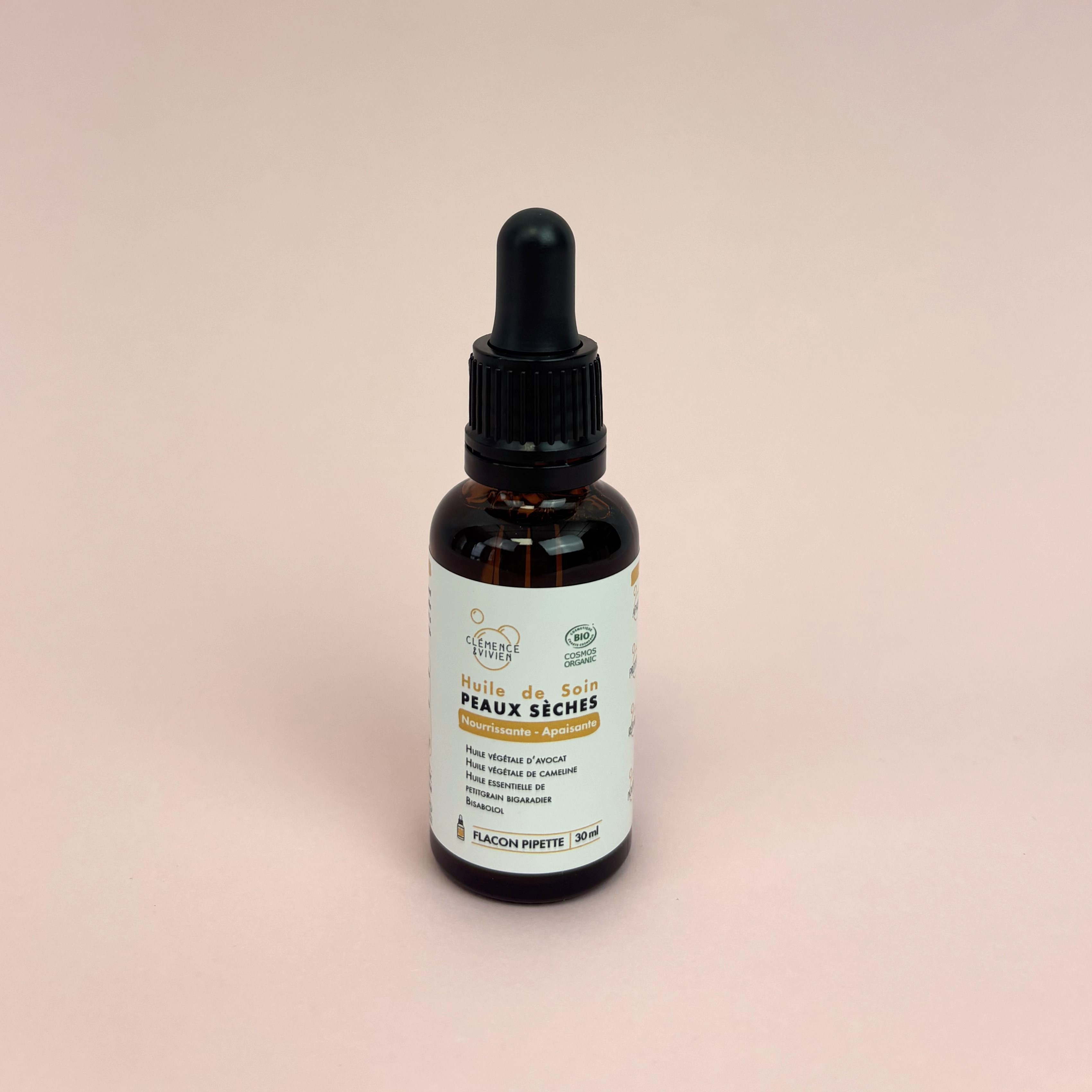 Première étape de cette routine, l’Huile de soin Peaux Sèches de Clémence & Vivien est soin spécialisé et doux pour les épidermes fragilisés. Formulée à 100 % d’ingrédients d’origine naturelle et certifiée BIO, cette huile fine et légère associe des huiles végétales riches en acides gras essentiels et en vitamine E, pour nourrir, apaiser et protéger la peau dès l’application.