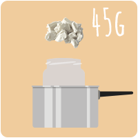 Après avoir prélevé la quantité nécessaire de beurre de karité, faites-le fondre doucement au bain-marie (avec une eau entre 35 et 40°). Cette étape peut prendre entre 2 et 5 min.