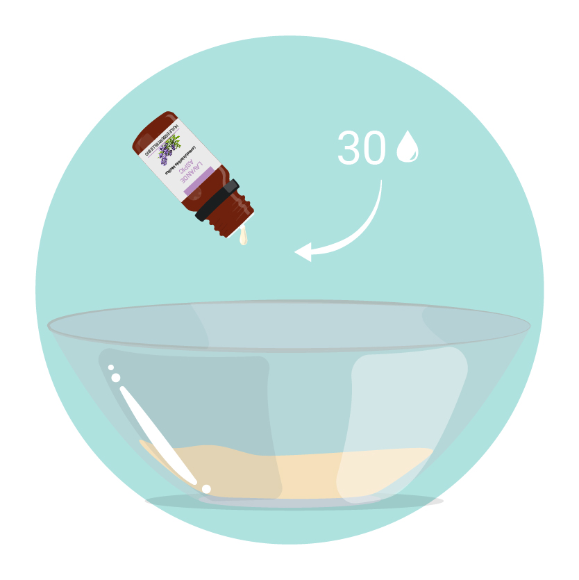 Maintenant que le beurre de karité a fondu, sortez-le du bain-marie et ajoutez les 30 gouttes d'huile essentielle de Lavande Aspic.