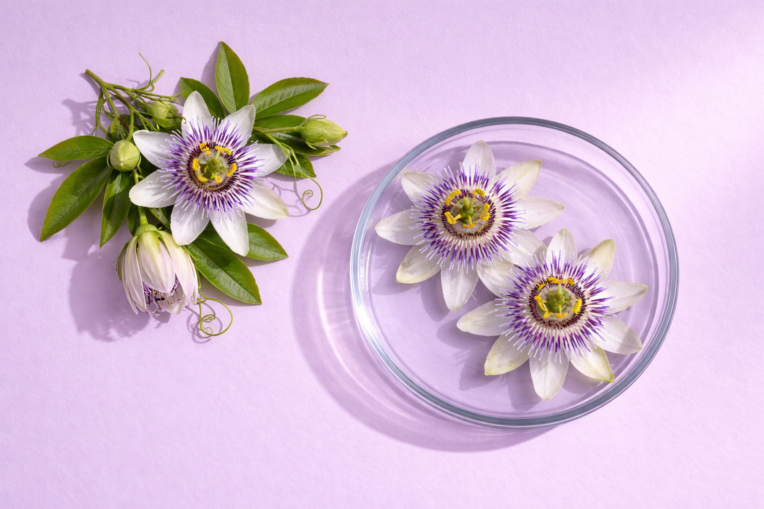 La Passiflore (Passiflora incarnata L.) est utilisée en phytothérapie pour ses propriétés anxiolytiques et sédatives. Ce sont les parties aériennes de la plante — tiges, feuilles, fleurs et fruits — qui contiennent les principes actifs d'intérêt, notamment des flavonoïdes. Leur mécanisme d'action repose sur la modulation du système GABAergique : ces flavonoïdes agissent comme agonistes partiels des récepteurs GABA-A, les mêmes que ciblent les benzodiazépines, réduisant ainsi l'hyperactivité neuronale liée à l'anxiété. Une action complémentaire sur les systèmes sérotoninergique et adrénergique, impliqués dans la régulation de l'humeur et du stress, est également décrite.