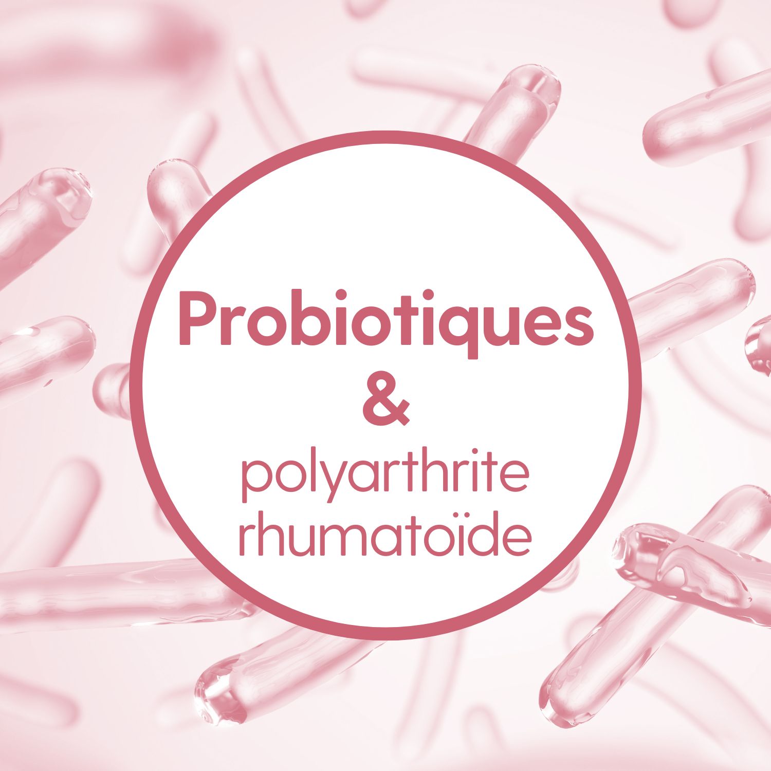 De plus en plus de recherches portent sur l'intérêt des probiotiques dans la prise en charge de la polyarthrite rhumatoïde (PR). Plusieurs mécanismes d'action ont été mis en évidence avec certaines souches bien caractérisées : modulation la réponse immunitaire, réduction de la perméabilité intestinale, diminution de la production de cytokines pro-inflammatoires (TNF-α, IL-6), avec une amélioration indirecte de certains marqueurs inflammatoires comme la CRP.